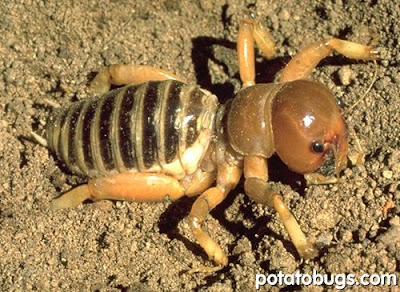 You'll find everything you hate in an insect in the potato bug. You're afraid to lift that cardboard box that's been sitting outside for too long, because there might be a potato bug lurking beneath it. You're afraid to empty your pool skimmer, because there might be a potato bug bobbing in the water. They're huge and armed with spike hind legs that they thrash you with if you pick them up.