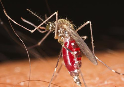 Here is one such instance. See her ram her siphon into the human's skin and tank up? All that blood is human blood. It's because of this blood drinking, and the attendant spread of blood-borne pathogens, that mosquitoes are responsible for the death of more humans in world history than any other animal.