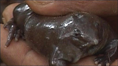 Native to India, the purple frog (Nasikabatrachus sahyadrensis) is a relatively recent discovery. They spend nearly their time entire underground, where they eat and sleep and play chess. But come the monsoons, with their temporary rain pools, these anurans mate by amplexus (frog hugs) while floating on the water's surface (romance!). The sight of storm ravaged soil must be to this frog what soft candle light and turned-down silk sheets are to most of you.