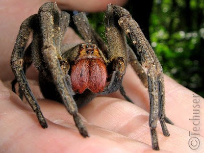 Jade, a proven arachnophile and experienced invert breeder, passed this one along to us. These are images of a man handling the world's most deadly spider: the Brazillian wandering spider (Phoneutria nigriventer).