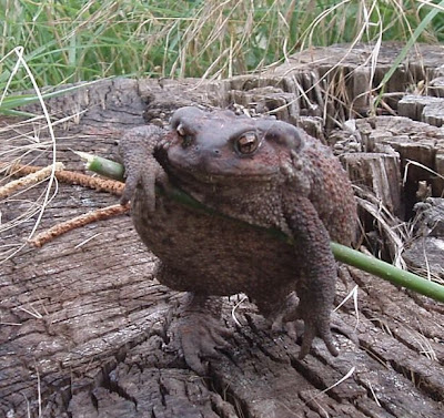 These fowler's toads (below) are not to be outdone. They actually thump their toes when they suspect insects and other invertebrates are near. Though nothing is conclusive, it appears that the rhythmic thumping causes the inverts to wriggle and scatter, allowing the toad to better snatch them up.